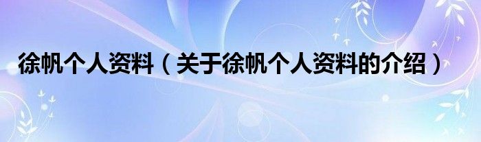 徐帆个人资料(关于徐帆个人资料的介绍)