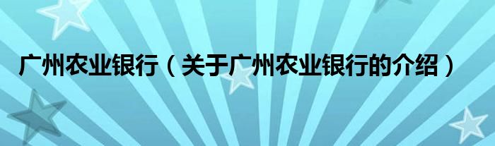 大家好,小方来为大家解答以上的问题。广州农业银行,关于广州农业银行的介绍很多人还不知道,现在让我们一起来看看吧!