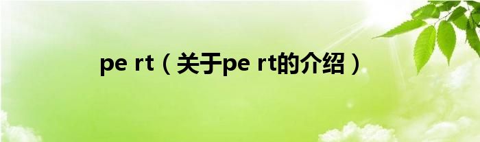 大家好,小方来为大家解答以上的问题。pe rt,关于pe rt的介绍很多人还不知道,现在让我们一起来看看吧!