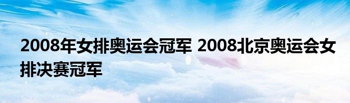 导读 大家好,小生来为大家解答以上的问题。2008年女排奥运会冠军,2008北京奥运会女排决赛冠军这个很多人还不知道,现在让我们一起来看看吧!