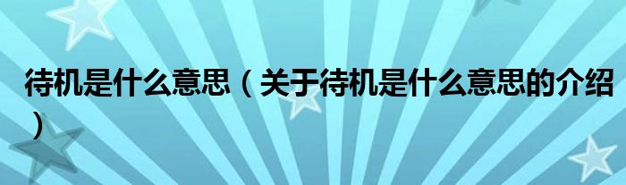 大家好,小方来为大家解答以上的问题。待机是什么意思,关于待机是什么意思的介绍很多人还不知道,现在让我们一起来看看吧!