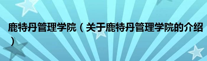 鹿特丹管理学院(关于鹿特丹管理学院的介绍)
