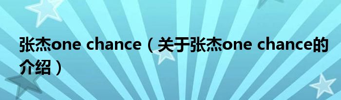 大家好,小方来为大家解答以上的问题。张杰one chance,关于张杰one chance的介绍很多人还不知道,现在让我们一起来看看吧!