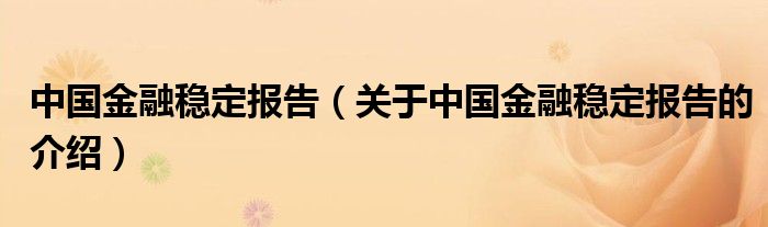 中国金融稳定报告(关于中国金融稳定报告的介绍)