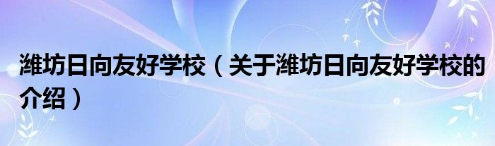 潍坊日向友好学校(关于潍坊日向友好学校的介绍)