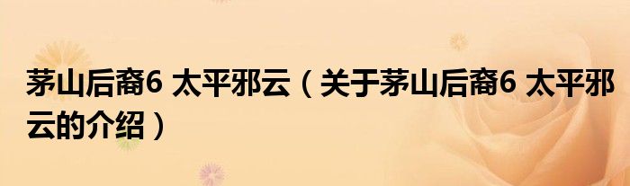 茅山后裔6 太平邪云(关于茅山后裔6 太平邪云的介绍)