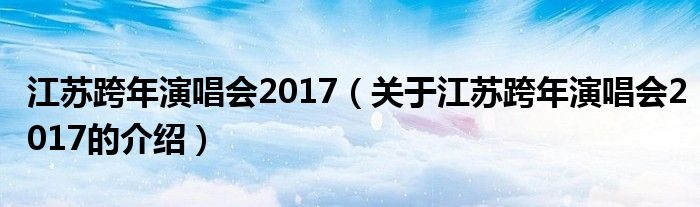 江苏跨年演唱会2017(关于江苏跨年演唱会2017的介绍)