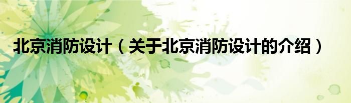 大家好,小方来为大家解答以上的问题。北京消防设计,关于北京消防设计的介绍很多人还不知道,现在让我们一起来看看吧!