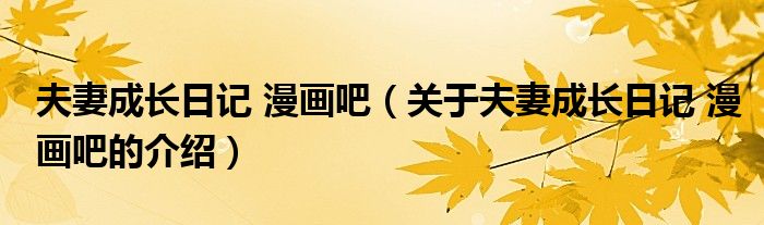 夫妻成长日记 漫画吧(关于夫妻成长日记 漫画吧的介绍)