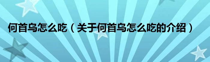何首乌怎么吃(关于何首乌怎么吃的介绍)