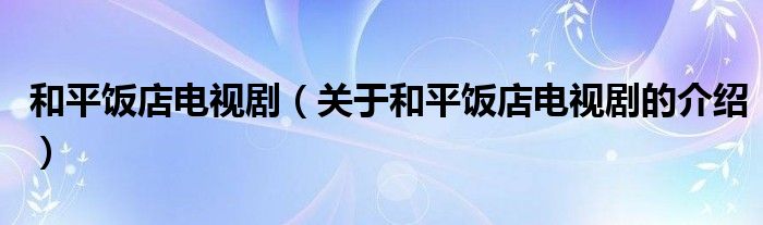 和平饭店电视剧(关于和平饭店电视剧的介绍)