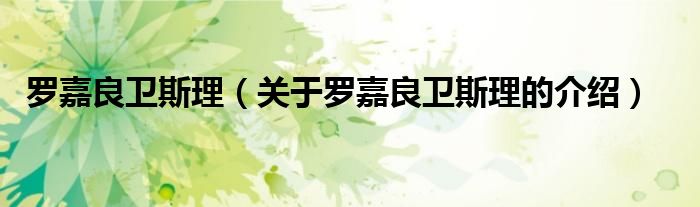 罗嘉良卫斯理(关于罗嘉良卫斯理的介绍)