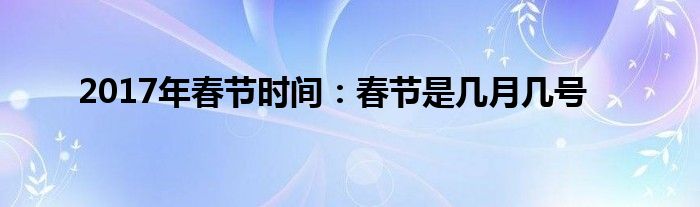 以上是小编为大家整理的内容“ 2017年春节时间:春节是几月几号”。希望可以帮助到大家。想要了解春节放假安排资讯,请点击》》》》春节