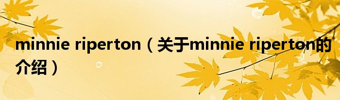 大家好,小活来为大家解答以上的问题。minnie riperton,关于minnie riperton的介绍很多人还不知道,现在让我们一起来看看吧!