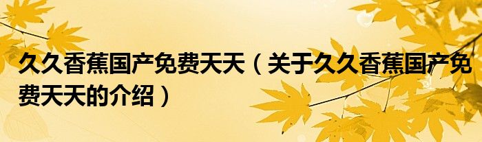 久久香蕉国产免费天天(关于久久香蕉国产免费天天的介绍)