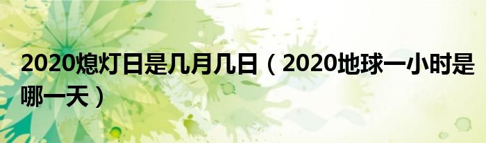 一、2020熄灯日是几月几日 2020地球一小时是哪一天