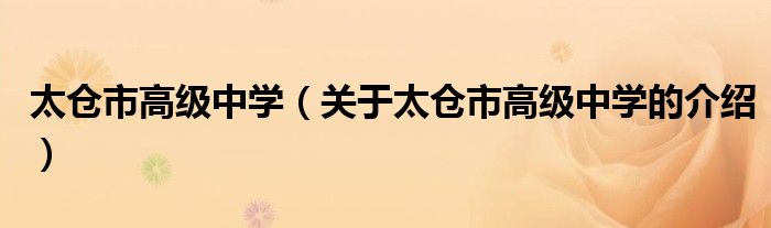 太仓市高级中学(关于太仓市高级中学的介绍)