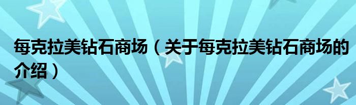 每克拉美钻石商场(关于每克拉美钻石商场的介绍)