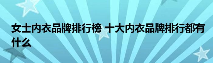 导读 大家好,小生来为大家解答以上的问题。女士内衣品牌排行榜,十大内衣品牌排行都有什么这个很多人还不知道,现在让我们一起来看看吧!