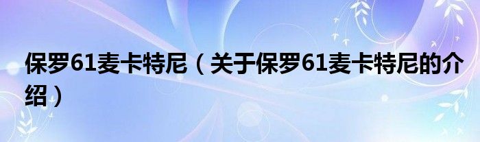 保罗61麦卡特尼(关于保罗61麦卡特尼的介绍)