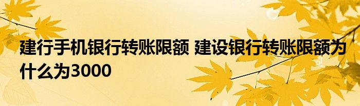 建行手机银行转账限额 建设银行转账限额为什么为3000