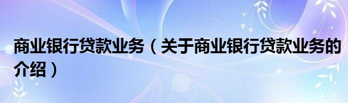 商业银行贷款业务(关于商业银行贷款业务的介绍)