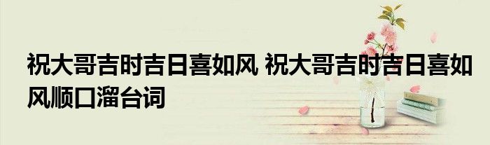 祝大哥吉时吉日喜如风 祝大哥吉时吉日喜如风顺口溜台词