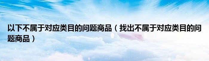导读 大家好,小活来为大家解答以上的问题。以下不属于对应类目的问题商品,找出不属于对应类目的问题商品这个很多人还不知道,现在让我们一起来看