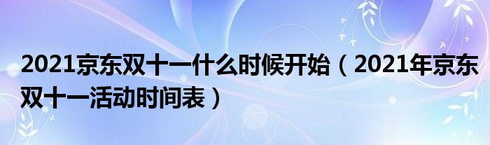 2021京东双十一什么时候开始(2021年京东双十一活动时间表)