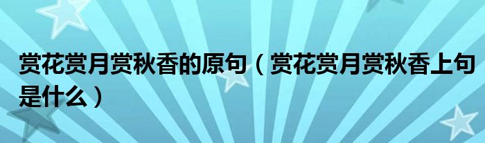 赏花赏月赏秋香的原句(赏花赏月赏秋香上句是什么)
