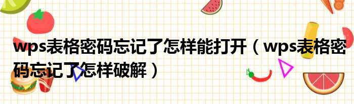 wps表格密码忘记了怎样能打开(wps表格密码忘记了怎样破解)