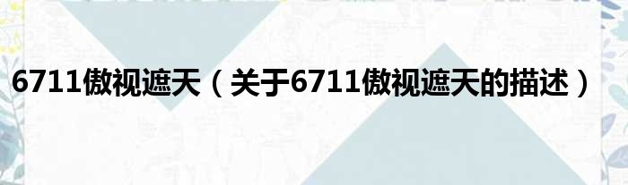 导读 今天来聊聊关于6711傲视遮天,关于6711傲视遮天的描述的文章,现在就为大家来简单介绍下6711傲视遮天,关于6711傲视遮天的描述,希望对各位