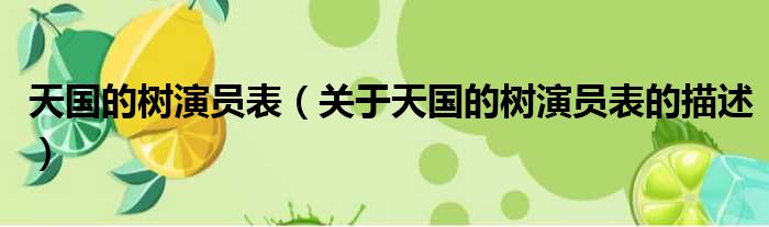 相信通过天国的树演员表,关于天国的树演员表的描述这篇文章能帮到你,在和好朋友分享的时候,也欢迎感兴趣小伙伴们一起来探讨。