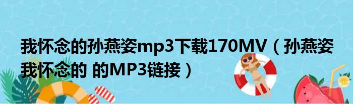 我怀念的孙燕姿mp3下载170MV(孙燕姿 我怀念的 的MP3链接)