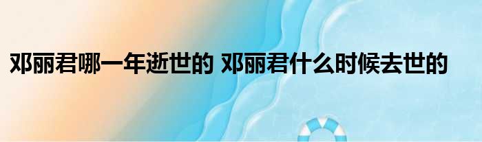导读 今天来聊聊关于邓丽君哪一年逝世的,邓丽君什么时候去世的的文章,现在就为大家来简单介绍下邓丽君哪一年逝世的,邓丽君什么时候去世的,希
