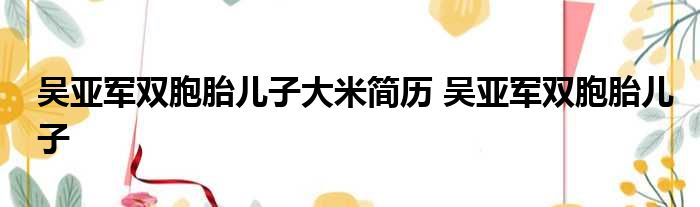 今天来聊聊关于吴亚军双胞胎儿子大米简历,吴亚军双胞胎儿子的文章,现在就为大家来简单介绍下吴亚军双胞胎儿子大米简历,吴亚军双胞胎儿子,希望对各位小伙伴们有所帮助。