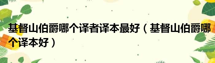 基督山伯爵哪个译者译本最好(基督山伯爵哪个译本好)