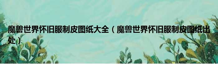 魔兽世界怀旧服制皮图纸大全(魔兽世界怀旧服制皮图纸出处)