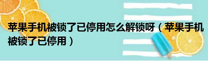 苹果手机被锁了已停用怎么解锁呀(苹果手机被锁了已停用)