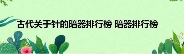 今天来聊聊关于古代关于针的暗器排行榜,暗器排行榜的文章,现在就为大家来简单介绍下古代关于针的暗器排行榜,暗器排行榜,希望对各位小伙伴们有所帮助。