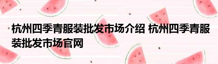 相信通过杭州四季青服装批发市场官网这篇文章能帮到你,在和好朋友分享的时候,也欢迎感兴趣小伙伴们一起来探讨。