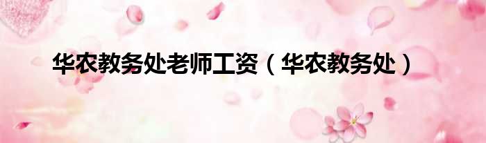 大家好,小活来为大家解答以上的问题。华农教务处老师工资,华农教务处这个很多人还不知道,现在让我们一起来看看吧!