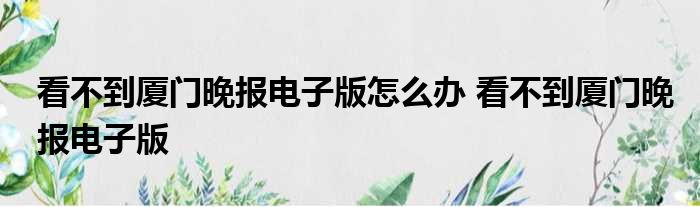 看不到厦门晚报电子版怎么办 看不到厦门晚报电子版