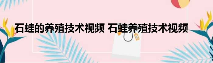 石蛙的养殖技术视频 石蛙养殖技术视频