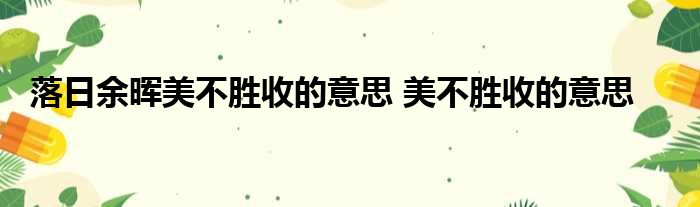 导读 今天来聊聊关于落日余晖美不胜收的意思,美不胜收的意思的文章,现在就为大家来简单介绍下落日余晖美不胜收的意思,美不胜收的意思,希望对