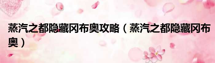 蒸汽之都隐藏冈布奥攻略(蒸汽之都隐藏冈布奥)