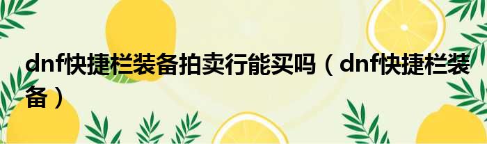 dnf快捷栏装备拍卖行能买吗(dnf快捷栏装备)