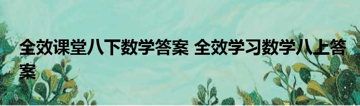 导读 今天来聊聊关于全效课堂八下数学答案,全效学习数学八上答案的文章,现在就为大家来简单介绍下全效课堂八下数学答案,全效学习数学八上答案