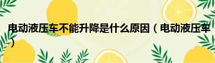 导读 大家好,小活来为大家解答以上的问题。电动液压车不能升降是什么原因,电动液压车这个很多人还不知道,现在让我们一起来看看吧!1、电动液压