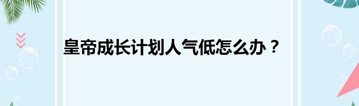 大家好,小活来为大家解答以上的问题。皇帝成长计划人气低怎么办?这个很多人还不知道,现在让我们一起来看看吧!